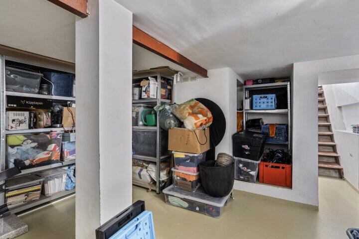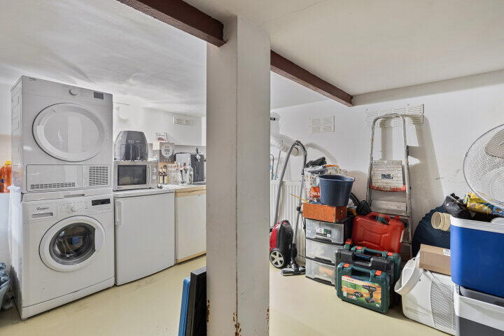 De recent gerenoveerde kelder is een volwaardige extra ruimte en ideaal ingericht als wasruimte met veel opbergmogelijkheden en aansluitingen voor witgoed.