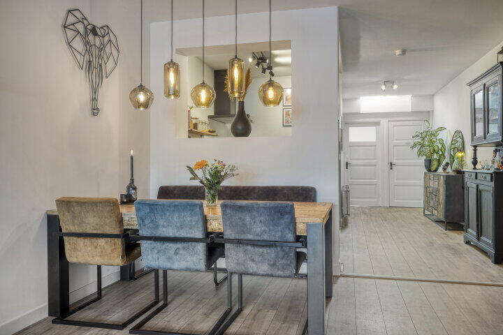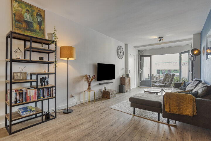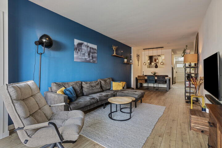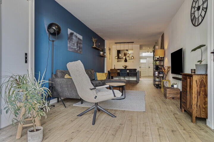 De woning is instapklaar en modern afgewerkt, met strakke wanden en plafonds en een nette laminaatvloer. De royale woonkamer heeft openslaande deuren naar de voortuin en biedt veel natuurlijk licht.